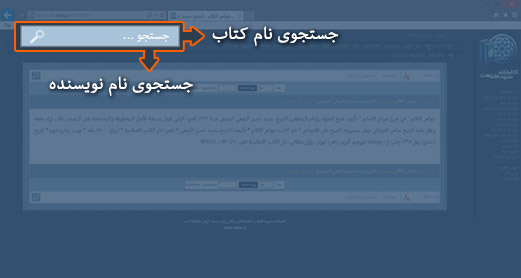 کادر جستجو در بالای صفحه، قسمت سمت چپ قرار دارد. چنانچه کاربر، در جستجوی کتابی خاص یا آثار نویسندهای معین باشد، میتواند نام مورد نظر را در قسمت جستجو درج کند.