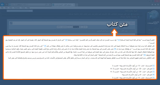 متن کتابهایی که در کتابخانه مدرسه فقاهت قرار دارد، صفحه به صفحه و با نسخه چاپی یکی است و در مواردی که صفحهای در نسخه چاپی، خالی و بدون متن باشد، عبارت «این صفحه در کتاب اصلی بدون متن است / هذه الصفحة فارغة فی النسخة المطبوعة» نمایش داده میشود.